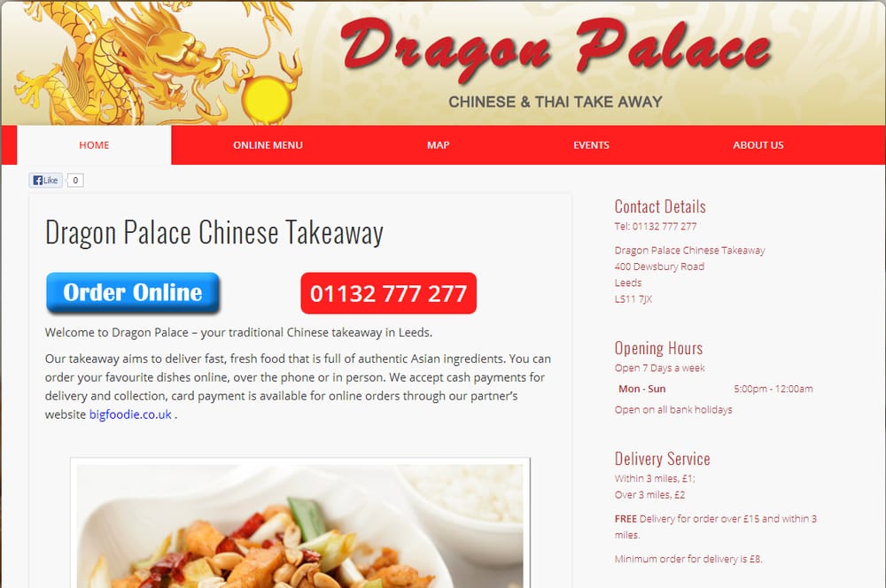 Located in the heart of Beeston, Leeds, Dragon Palace 400 Dewsbury Rd serves up a delightful array of authentic Chinese dishes that truly shine. The menu welcomes diners with an enticing selection of starters, including the Salt & Pepper Squid and Satay Chicken on Skewers, ensuring bursts of flavor with every bite. For those who love sharing, the Special Combination for 2 offers a mouthwatering platter of BBQ Spare Ribs, Prawn Toast, and more. Vegetarians aren’t left out, with options like Salt & Pepper Bean Curd and Vegetarian Spring Rolls tantalizingly presented. The chef's recommendations elevate spicy cravings with dishes like Salt & Pepper Shredded Chicken. Each dish is crafted with passion, promising satisfaction that lingers long after the meal is over. Make sure to indulge your taste buds at this gem of a restaurant!